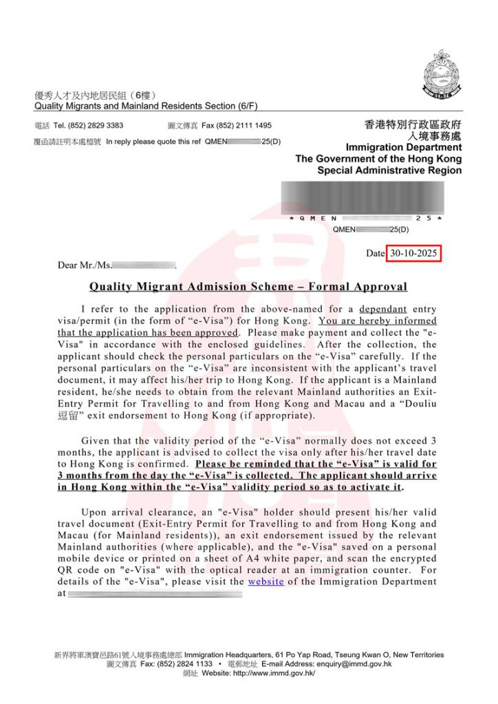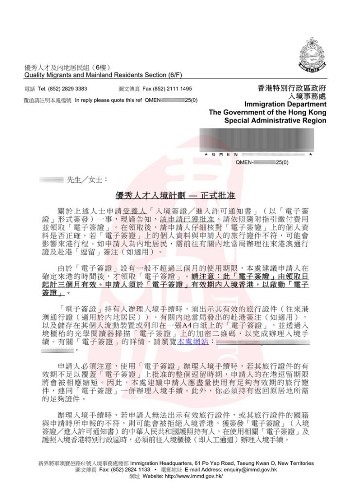 百强硕士G先生4个月获批香港优才获批案例