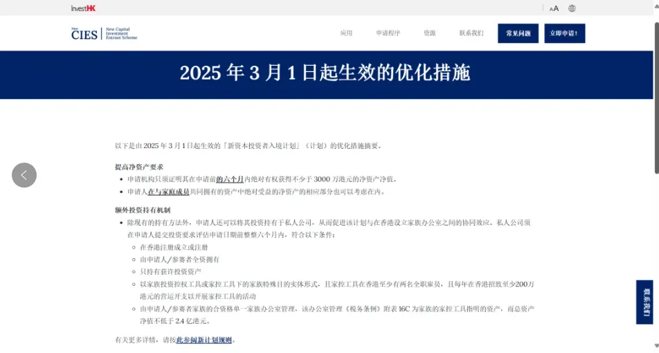 - 资产审查期缩短83%:仅需证明申请前6个月持有3000万港元净资产(原需2年)。
